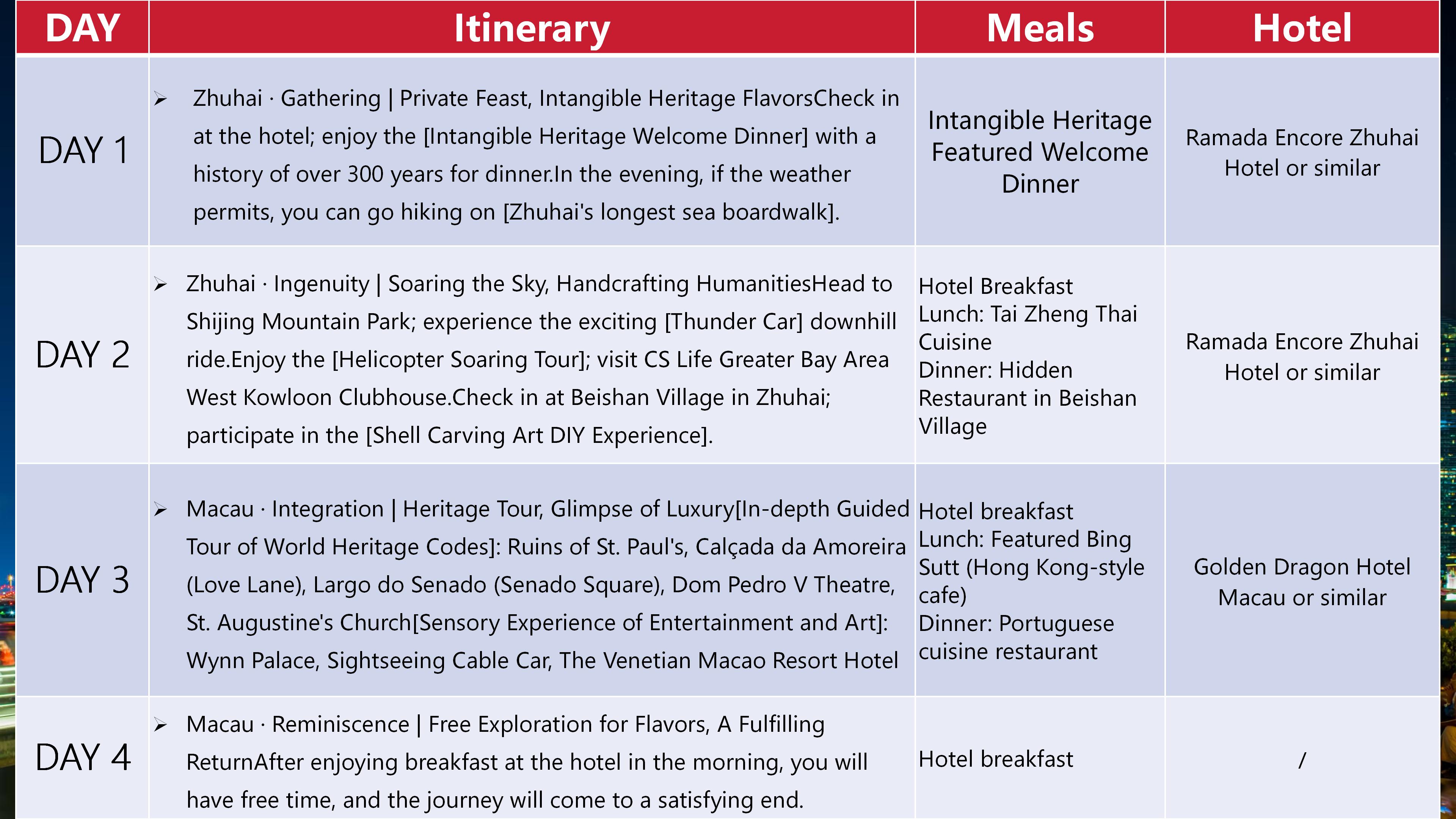 4D3N 【Comfort】Zhuhai & Macau Trip